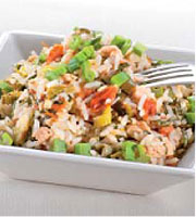 Cuire le riz. Pendant ce temps, émincer les oignons avec les fanes, hacher l'ail et couper les tomates séchées en fines lamelles. Dans une sauteuse, faire...