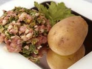 Recette traditionnelle de République Tchèque. Faire brièvement revenir les tranches de jambon dans le beurre. Faire tremper les bolets séchés. Faire sauter les lardons dans une poêle,...