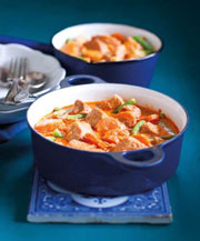 Hacher finement l’échalote et l’ail. Peler le gingembre et le couper en lanières. Couper également en lanière les oignons nouveaux (avec les tiges vertes) et...