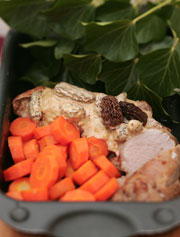 Mettre les raisins dans un bol d'eau tiède afin de les faire gonfler. Salez et poivrez le rôti, puis l'enduire de miel. Emincez les oignons (ou échalotes). Pressez...