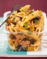 Egouttez les pâtes, mélangez le tout et arrosez d'huile d'olive avant de servir. Vous pouvez proposer ce plat avec du parmesan.