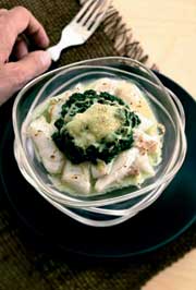 Faites cuire les épinards surgelés comme indiqué sur le paquet (20 min avec un demi-verre d’eau pour 600 g d’épinards). Pendant ce temps, portez à ébullition...