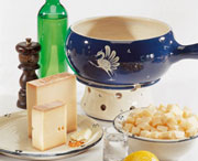 Frotter le caquelon avec la gousse d'ail coupée en deux. Mélanger les fromages et la maïzena, ajouter le vin blanc et le jus de citron...